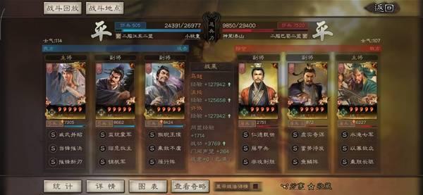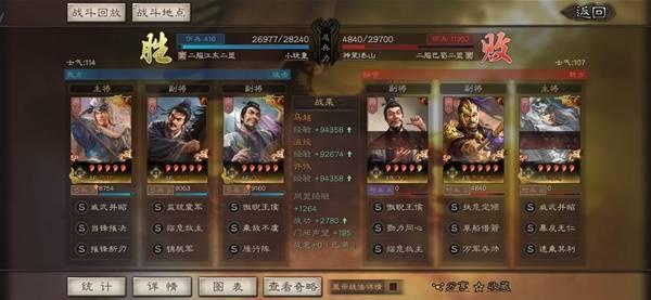 马超可以用全兵种提升S,许攸用弓兵宝物升S。这个阵容其实很多玩家早就想完,在汉剧本终于可以实现了,沮授跟其他两人的联动,尤其是雁形阵联动可以说完美,沮授可以延长(摧锋的减攻、乘敌的虚弱、许攸的虚弱和减属性、雁行阵的转移负面和偷统率),看第一场对战太尉盾,沮授判定了109次。看看其他的对战皇马、法官的战报,都很占优势。