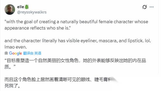这类批评也遭到了不少网友的反驳。其中,知名女记者Vara Dark便直接回怼道:“如果一个美丽的女性角色就能让你破防成这样,那真的该去看看医生了。”