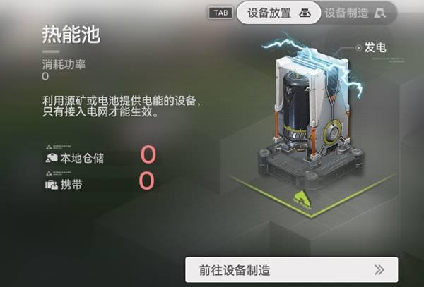 2、想要解决电不足问题,我们就要建造热能池这个设备,该设备可以通过消耗部分物品来提供额外功率。
