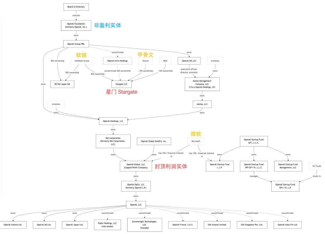 尽早上市,OpenAI 尚可以利用公众目前尚且高涨的乐观情绪,将基建融资的风险分散给二级市场的全球资本。这符合股东套现的需求,同时也是维持 OpenAI 烧钱速度的可持续融资方案。然而,IPO 的时间选择至关重要。汇丰研报指出,OpenAI 目前仍然处在一个相对「轻资产」的阶段。但如果 Stargate 项目真的推进下去,到了 2030 年,OpenAI 将转变为一家背负上千亿美元硬件折旧压力的重资产公司——IPO 的风险将成倍增加。更别提届时投资者对 AI 的热情可能已经冷却。不仅如此,通往 IPO 的道路上,荆棘重重。除了前面提到的财务窟窿之外,OpenAI 还需要解决公司架构、财务和法务上的一些问题。比如,OpenAI 当前的「非盈利+封顶盈利」(nonprofit + capped profit) 架构,本身就是一个非常扭捏的发明,与当前二级市场的规则格格不入。如果要 IPO,OpenAI 势必要再经历一次争议性拉满的架构重组(更别提马斯克也已经发出了诉讼,要求千亿美元的天价赔偿,也会进一步让事态复杂化)。此外,OpenAI 与微软、英伟达、甲骨文等公司之间复杂且令人费解的连环资本局,在上市的时候也必须公之于众。并且这些交易的细节,也会对 OpenAI 去年所谓的 130 亿实收的真实情况带来修正。