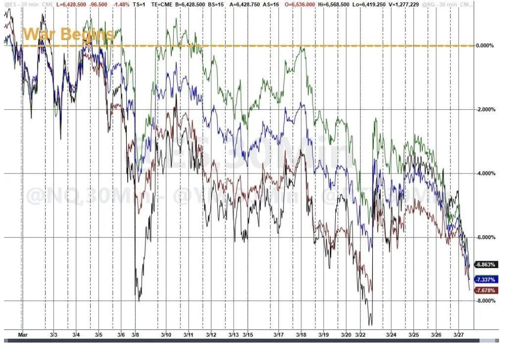 美伊冲突持续拖累市场情绪,标普500指数连续五周下跌,特朗普“口头缓和”正在失效。