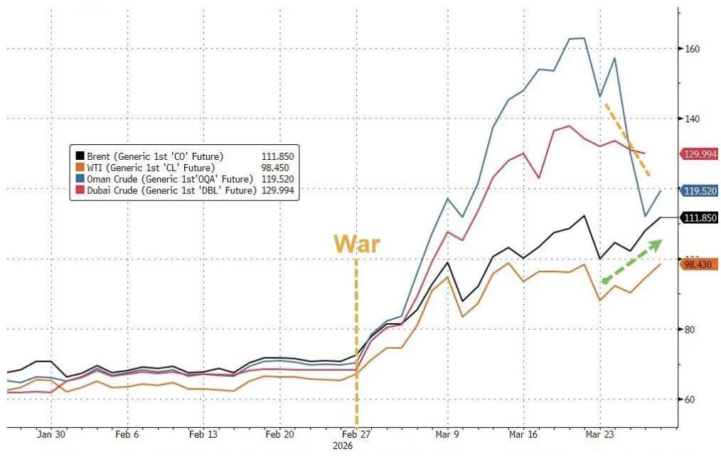 值得注意的是,中东石油的现货价格已远高于布伦特或WTI等金融基准,这一价差被视为物理供应短缺向全球其他地区蔓延的前兆,令投资者高度警惕。