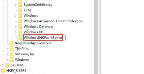 3、右击左侧的“Microsoft”在打开的菜单中点击新建,命名为“WindowsINKWorkSpace”,如下图所示。