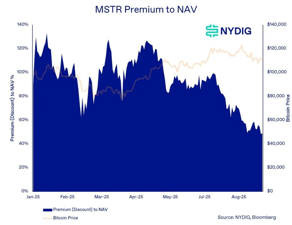 NYDIG 警告称,随着比特币购买放缓,加密货币国债溢价面临压力
