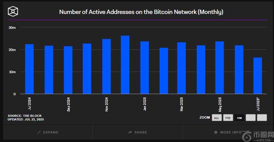 比特币网络月度活跃地址图表(图表:block.co)