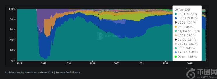 Tether主导地位下滑:稳定币市场竞争加剧,USDT市场份额降至60%