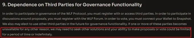 实用性?基本为零。它号称是"治理代币",但除此之外没有任何明确功能:没有收益分成、没有费用折扣、没有收益回报,什么都没有。而且官网上明确写着,他们可以随时地临时或永久限制你的治理权,说白了这根本就是形同虚设的治理。