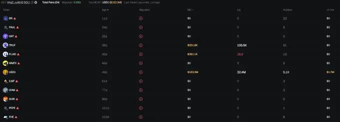 最让我震惊的是,在Solana上部署USD1的钱包还部署了其他一些几乎没有任何交易量的垃圾币。他们甚至不愿意用一个新地址来干净地部署USD1,而是使用了一个已经与垃圾币相关联的地址,这就很能说明问题了。