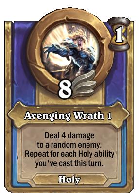 (1级)随机对一个敌人造成4点伤害。你在本回合中每施放过一个神圣技能,重复一次。