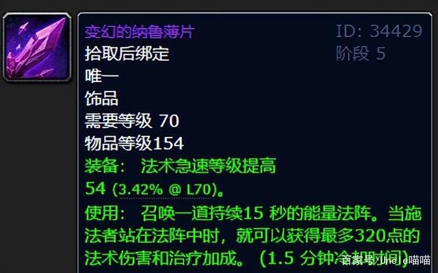 你很难想象,普通模式之下的经典5人本魔环竟然有着如此高端大气上档次的法系输出饰品,68点的法术强度提高堪称前期无敌存在,更为重要的是主动爆发256点的急速等级提高持续20秒足以让你将TBC都堪称毕业的古尔丹之颅扔进银行变为收藏品。
