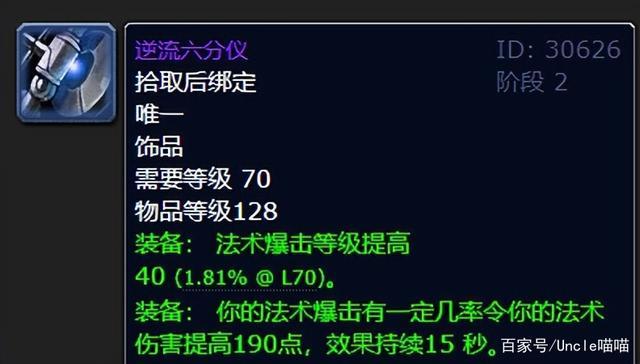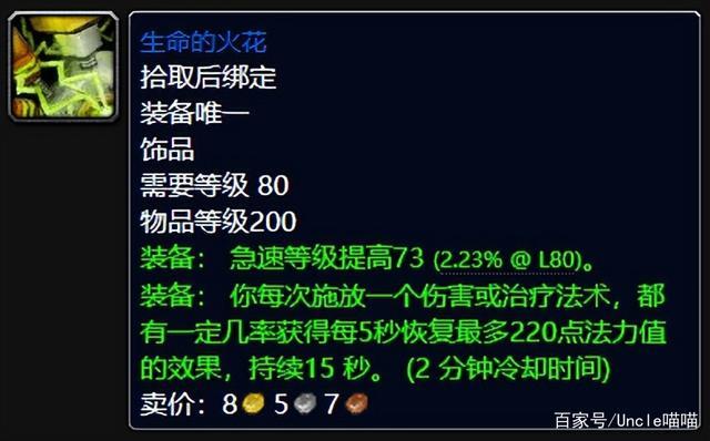 对于极其需求法术爆击的法系输出来说这东西还是香的,个人推荐元素萨一或者说是火法都是可以拿下堪称前期不错的饰品,虽然出发后的持续时间只有10秒,但是512点的法术强度提高也是真的没有谁了,经典饰品堪比大号逆流六分仪。