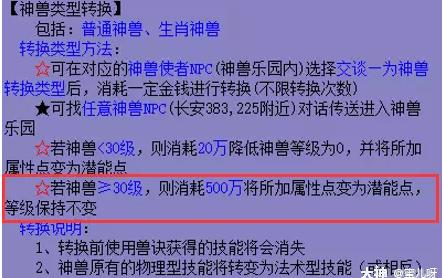 就是法术型神兽可以转换为攻击技能神兽,如果神兽等级≥30级,只需要花费500W就可以进行类型转换。