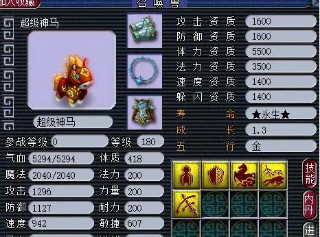 而通过类型转换2次的神马花费1000W游戏币,消耗高级防御和高级隐身进行打书即可成为帮战武神坛等主流抢速度的PK神马,关键是可以属性点全洗了调配自己速度,总花费也就4000W。