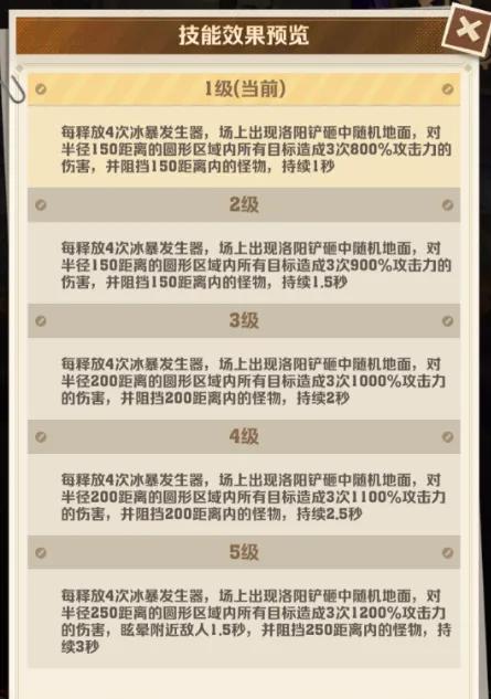 每4次释放冰暴技能后,可随机降下洛阳铲伤害并阻挡敌人的前进节奏。