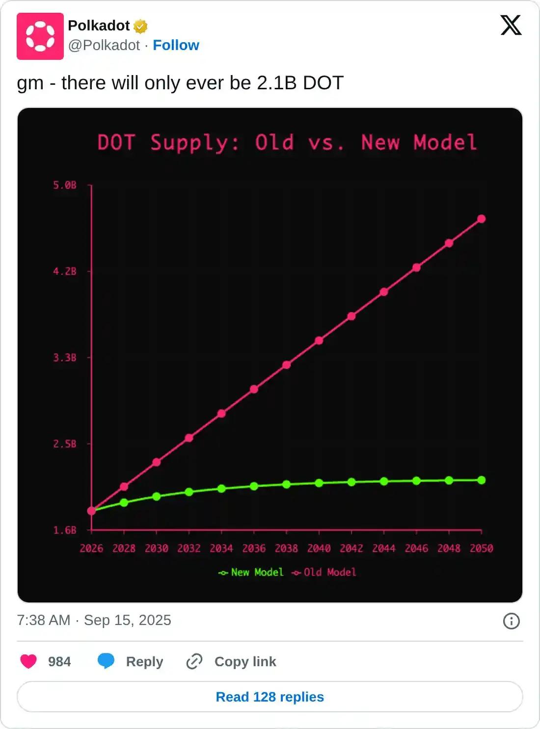 该网络预计实现约 19.1 亿 DOT 的总供应量,而之前的供应模式下为 34 亿 DOT。