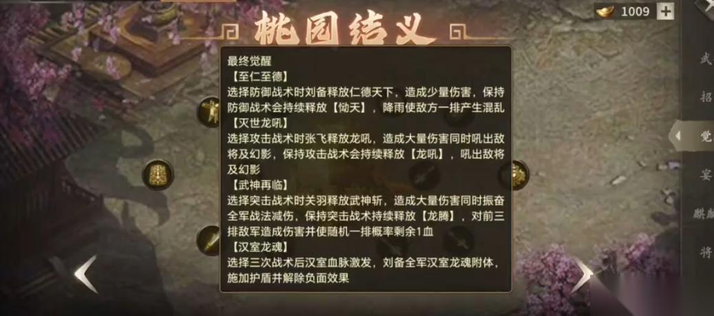桃源二层觉醒技能是提升战力的关键,尤其是桃园之誓联合觉醒系统。这一系统需要主将刘备搭配觉醒后的关羽和张飞,开启后部队会变为6排,并获得新战法技能至仁至德和被动战法恸天。至仁至德能在防守战术时释放仁德天下,造成伤害并降低敌方伤害;恸天则会在防御战术时持续释放,对敌方造成混乱效果。这些技能在战斗中能大幅提升团队的生存和控制能力。