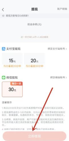 3.选择需要的金额,点击立即提现,提交河马剧场软件。