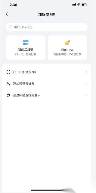 3、接下来有多种添加好友的方式,如使用二维码让对方扫一扫,或是扫一扫对方的二维码,同时也可以添加通讯录中的好友。