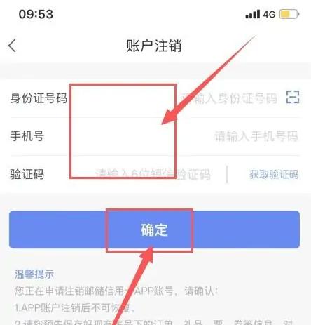 进入账户注销界面,填写相关信息,完成后点击“确定”,即可注销账户。如图: