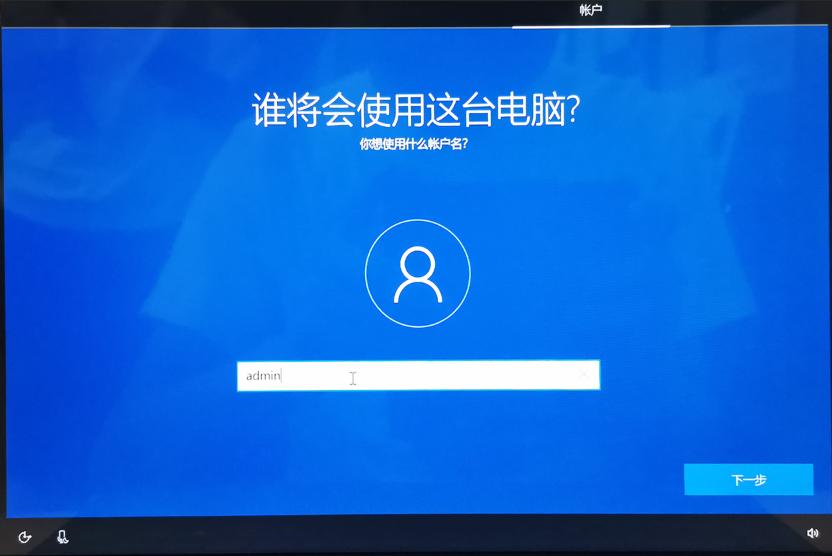 7、出现谁将会使用这台电脑界面时,我们任意输入一个用户名,再点击”下一步“。如下图: