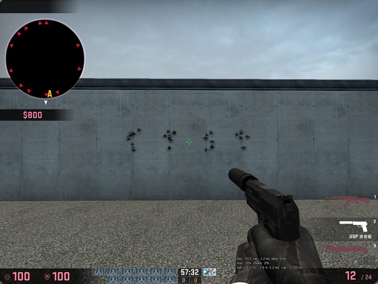 USP-S和P2000点射精度几乎没有区别(实际这是在很远的距离射击,走进截图)