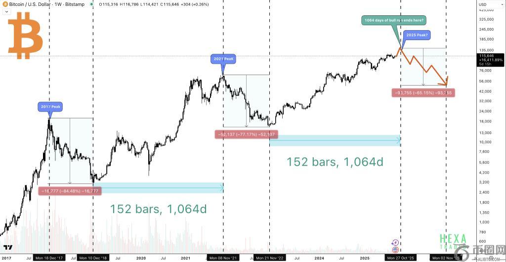 历史表明,比特币的峰值不会永远持续下去,分析师现在认为下一个主要峰值可能在短短 45 天内到来,价格将触及 14 万至 15 万美元,然后出现大幅回调。