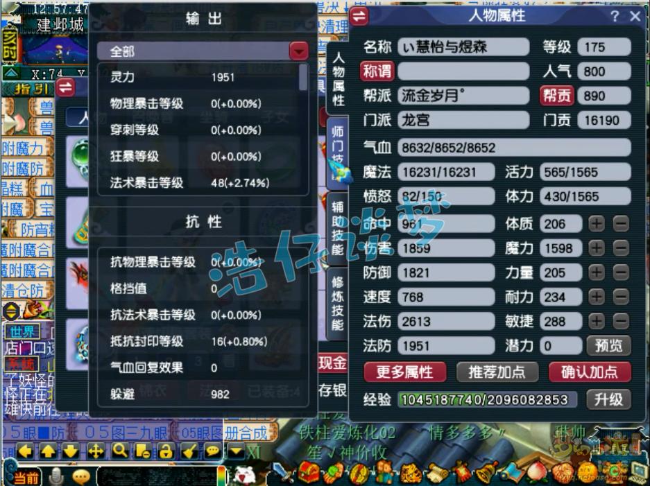 175级龙宫打符之后的面板属性,这属性刷任务就是一个字爽,不但有速度法伤还很高,也有抗性,任务法系都眼馋吧?