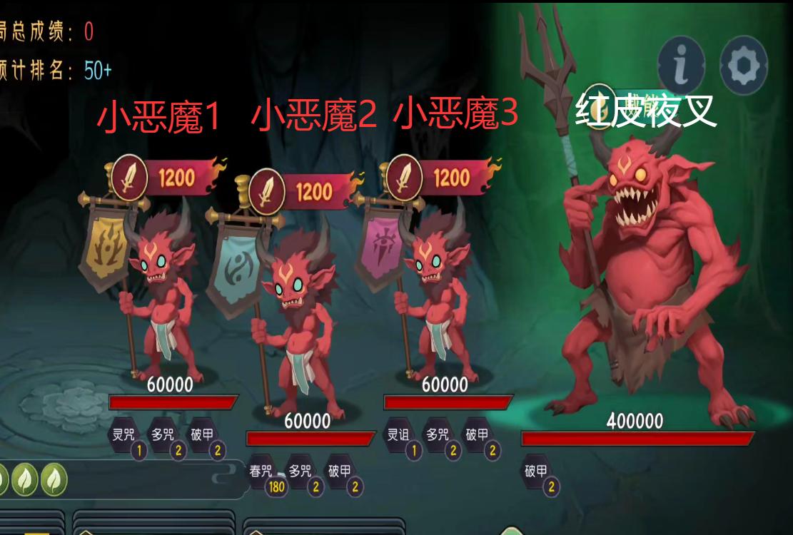 1、根据怪物的攻击模式可以发现,小怪的攻击是越来越高的,尤其是回合后期或者打死几轮怪之后小怪的攻击会叠的非常高我们血量承受不住,而大怪的特性是第一回合必定施加威能,所以我们的思路就是在一回合中杀不掉一轮怪的时候选择击杀3只小怪,只保留1只大怪,这样我们就不会受到攻击