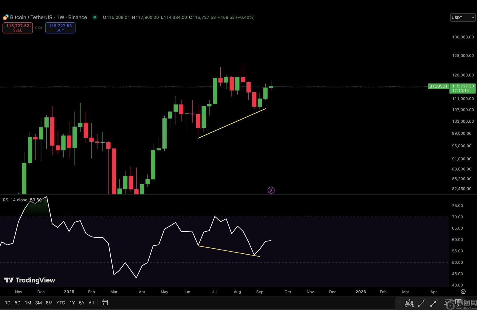 比特币周线图显示隐藏的看涨背离:BTC 在第四季度能涨到多高
