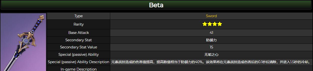 元素战技造成的伤害提高,提高数值为防御力的40%,1.5秒冷却,在元素战技造成伤害后0.1秒清除。