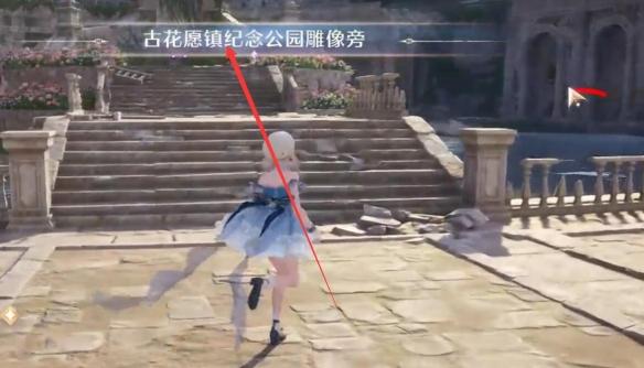 1、传到【纪念山地】往左边走,然后在路口往右上走;