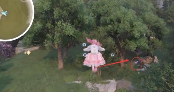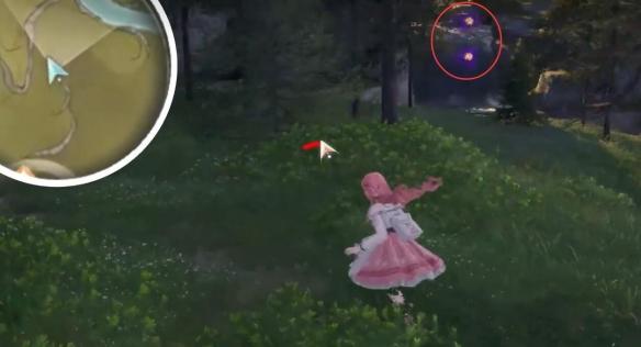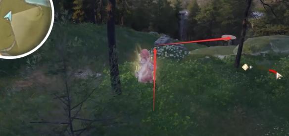 19、往主路左边的山走,在图示位置找到【灵感露珠*2】;