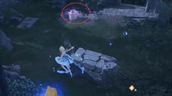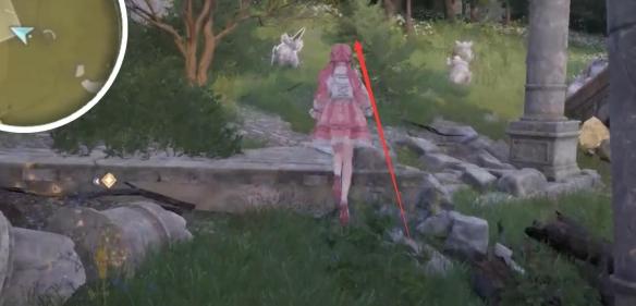 5、往圆台右边走,在靠左的草丛里【宝箱*1】,接着往下走;
