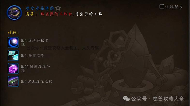 奥格瑞玛掉落珠宝专业制造坐骑“虚空水晶猎豹"制造攻略。(5月22日开放)