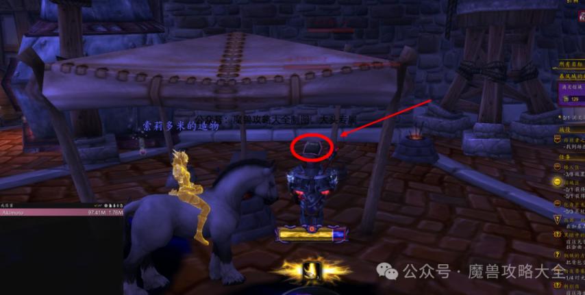3面具状态下,玩家去到奥格瑞玛雷克萨区下图位置(红箭头指向),可以看到一个地精。消灭它后会掉落坐骑图纸和材料之一[虚缚神秘宝珠]。(注:非珠宝专业不能获取图纸)
