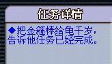 战斗细节:主速度快,主旁边也速度快,伤害和法伤都比较高,难度较大,怪血量也比较多。需要适当带点药和医生。战斗结束后得到44万左右经验,4万左右金钱,得到金箍棒。