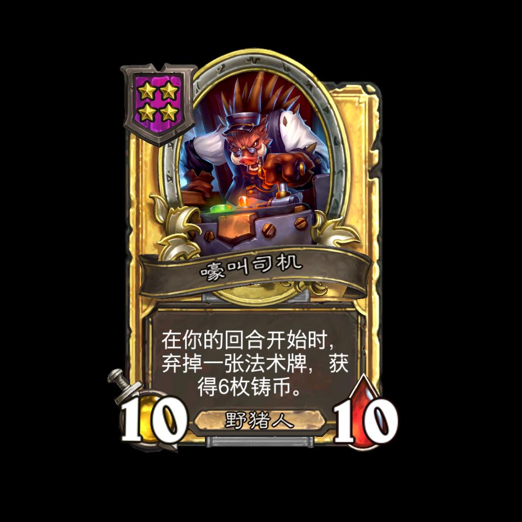 嚎叫司机 4星5/5 野猪人 在你的回合开始时,弃掉一张法术牌,获得3枚铸币。