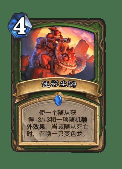 炉石传说新扩展包决战荒芜之地快上线了,决战荒芜之地带来了新的机制,新增了一些卡牌,比如迷彩坐骑,那么炉石传说迷彩坐骑怎么样?下面就给大家带来炉石传说迷彩坐骑卡牌图鉴。