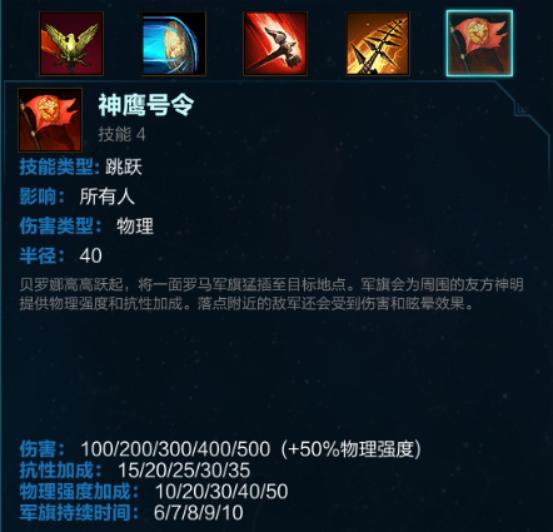 大招神鹰号令,贝罗娜会在指定范围内插一根旗子,对范围内的敌人造成伤害和眩晕效果,对友军提升物理强度和物理抗性。