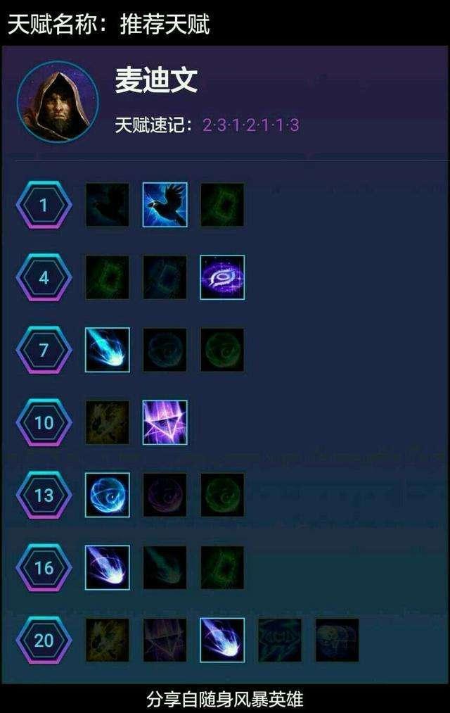 这是"随身风暴英雄"APP为我们推荐的天赋:
