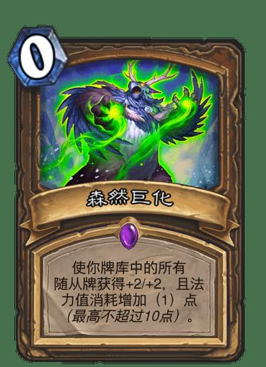 炉石传说是一款非常受到玩家喜爱的游戏,近日新版本巨龙降临即将上线,目前官方透出一张德鲁伊新卡,名叫森然巨化,很多玩家都好奇这张卡片的效果是什么?下面一起来了解下吧!