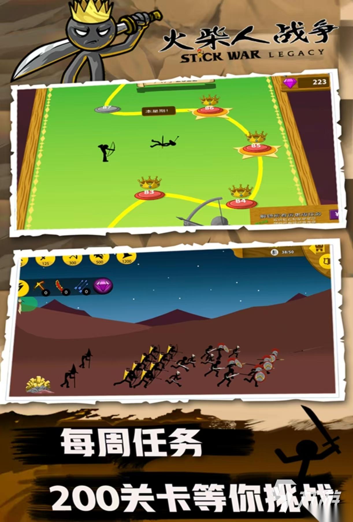 《火柴人战争》游戏内打造了许多的火柴人人,玩家可以打造一个火柴人军队,和其他的国家不断的进行进攻,拥有多种不同职业的角色。会逐渐的拥有更多战斗的技能,每一个关卡内都是不同的剧情和战斗方式,玩家可以根据敌人的类型选择不同战术。每一个关卡内都有不同的奖励获得,也可以不断的训练士兵,在野外的地图上挖掘黄金,可以为角色增加不同的属性效果。