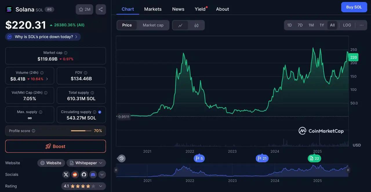" >ATH),涨幅达586倍。这些改变人生的倍数源于早期的仓位配置。如今,SOL仍然是大盘股的强势持有者,但并未提供许多投资者所追求的100倍上涨空间。