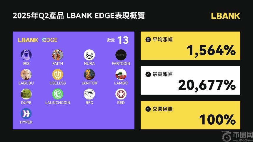 6月12日上线的LBANK EDGE专区被社区用户誉为“百倍币工厂”。通过链上数据监控与AI信号双重筛选,LBANK EDGE为每只早期资产匹配机构级做市深度,并在上线初期提供100%交易包赔(封顶100 USDT)及500万美元生态基金支持。这种机制有效缓冲了价格发现初期的剧烈波动,使“百倍潜力”与“风险对冲”得以并存。数据显示,专区首批项目平均涨幅达1,229%,最高记录20,677%仍在社区中广为传播。