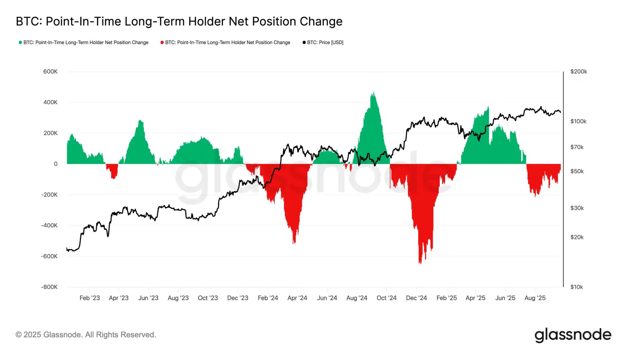 本周期也受到长期持有者抛售供应与通过美国现货 ETF 和 DATs 的机构需求之间拉锯战。随着 ETF 成为新的结构性力量,价格现在反映了这种推拉效应:长期持有者的获利了结限制了上行空间,而 ETF 流入则吸收了抛售并维持了周期的进展。