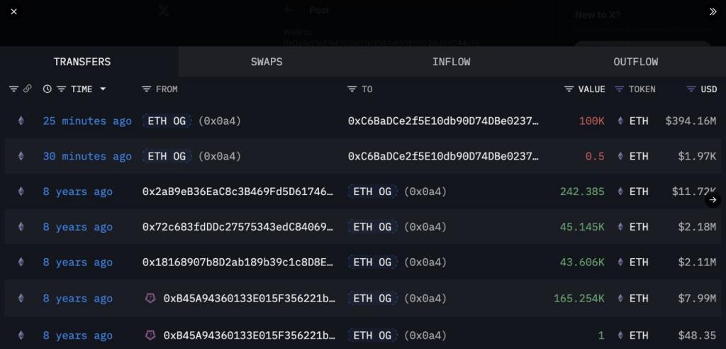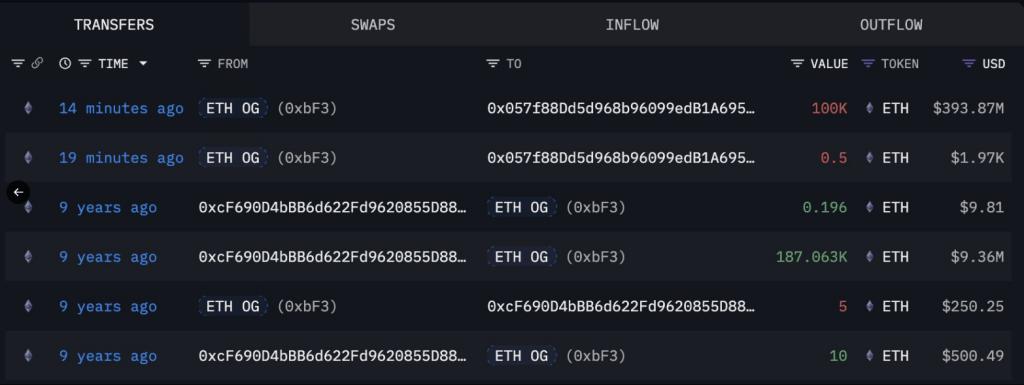 重大以太坊沉寂多年的持有者周五突然转移了大约 200,000 个 ETH,按当前价格计算价值约 8 亿美元。