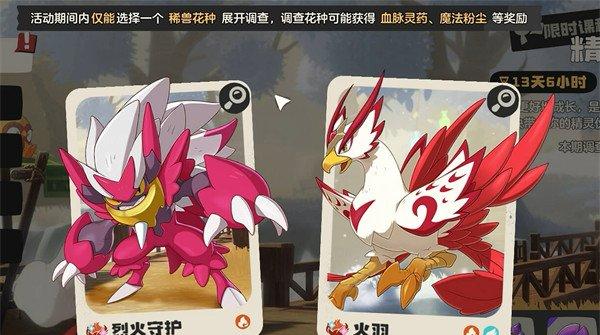 烈钻鸟之所以会稀有,是因为它没办法直接在世界里抓取,而是要等开放对应的火系精灵调查活动后,各位才能获得捕捉烈钻鸟的机会。具体的捕捉方法如下,当精灵调查开启后,各位可在两种可进行调查的精灵中选择火羽(烈钻鸟最终形态),再去找老师走完活动任务,就能正式开启精灵调查了。此后,火羽的稀兽花种会被标注在地图上,各位根据指引来到它的所在地,交互祈愿后稀兽花种就会出现。