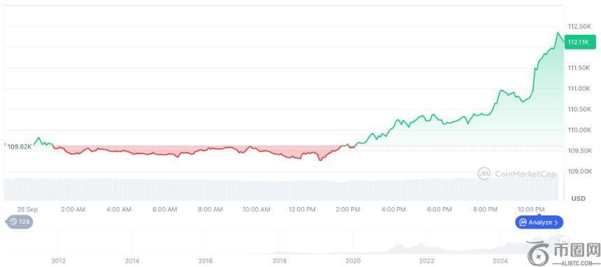 比特币(BTC)近期达到112,190.55 美元,据 CoinMarketCap 数据显示,其市值高达2.24 万亿美元,占市场主导地位的57.78%。过去 24 小时内,BTC 的交易量增长了32.02%,达到333 亿美元。目前流通供应量为1,993 万枚,BTC 的整体表现近几个月呈现出多样化趋势。