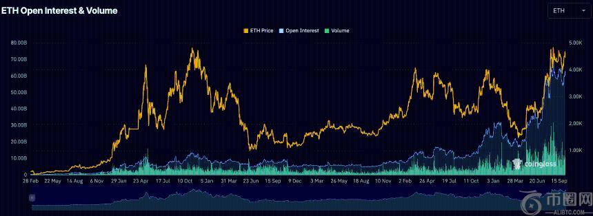 参考指标:BTC 与 ETH 的未平仓量与交易量