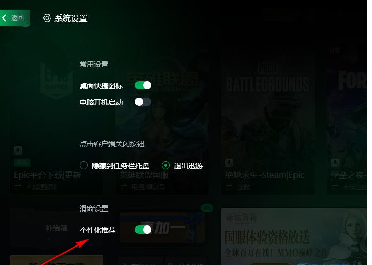 迅游加速器怎么关闭个性化推荐